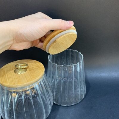 Đặt mua Hộp đựng trà thủy tinh nắp tre cao cấp bảo quản tốt 600-750ml HT40
