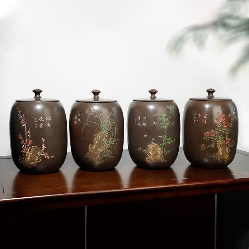 Đặt mua Hũ bảo quản trà lên men tử sa nê hưng hỏa biến mai lan cúc trúc cỡ lớn HT96