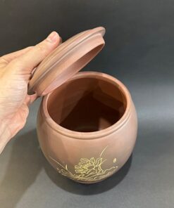 Đặt mua Hũ bảo quản trà lên men tử sa nê hưng thủ công khắc sen đẹp HT70