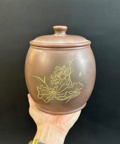 Hũ bảo quản trà lên men tử sa nê hưng thủ công khắc sen đẹp HT70