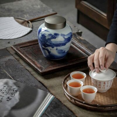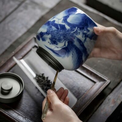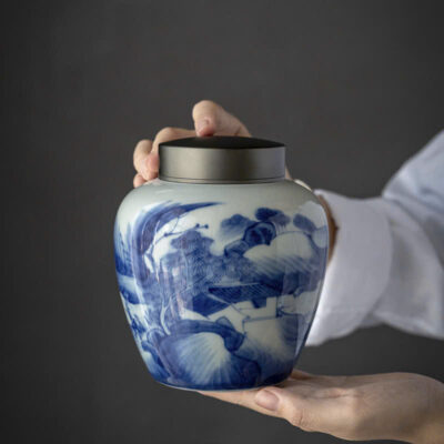 Đặt mua Hũ đựng trà sứ cao cấp nắp xoáy 900ml HT02