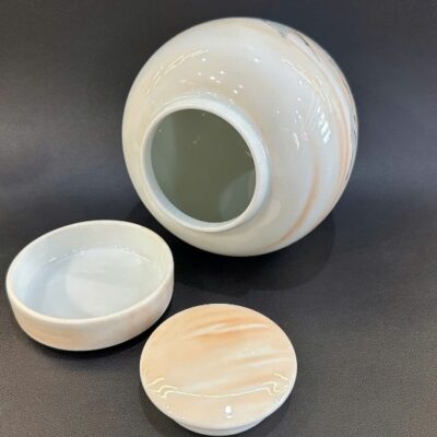 Đặt mua Hũ đựng trà bằng sứ cảnh đức men phấn thái vẽ tay hạc đẹp 7x13x15cm HT52