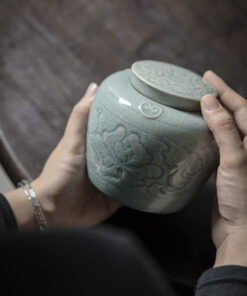 Đặt mua Hũ đựng trà bằng sứ cảnh đức men rạn cao cấp nắp khít bảo quản trà tốt 700ml HT04