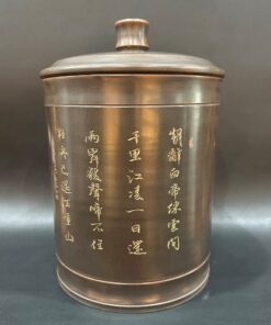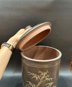 Hũ đựng trà phổ nhĩ dạng bánh tròn gốm tử sa cao cấp khắc trúc đẹp HT50
