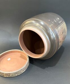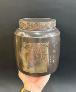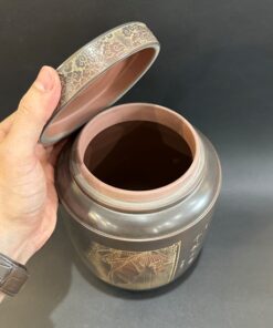 Hũ đựng trà phổ nhĩ tử sa nê hưng thủ công hoạ cây chuối đẹp đựng trà thơm