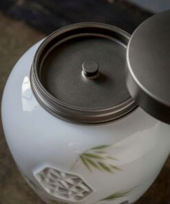 Hũ đựng trà sứ cảnh đức họa trúc vẽ tay nắp xoáy 2 lớp 800ml HT12