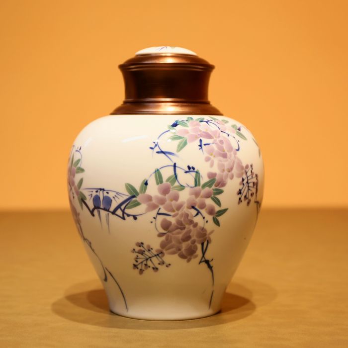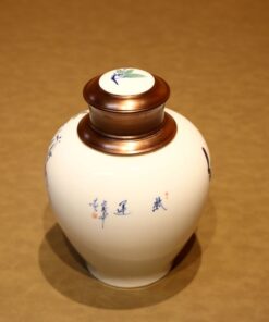 Đặt mua Hũ Trà Sứ Cảnh Đức Vẽ Tay Hoa 2 Nắp Xoáy 1L HT54