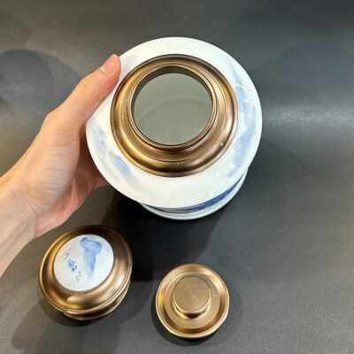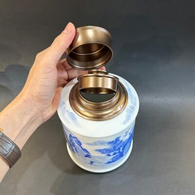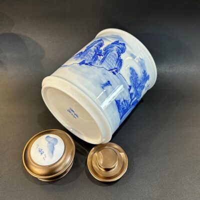 Đặt mua Hũ đựng trà sứ cảnh đức vẽ tay sơn thủy nắp xoáy kín đẹp 1L HT54