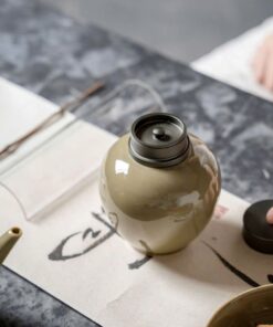 Hộp đựng trà sứ cao cấp cỡ nhỏ nắp xoáy 2 lớp kín 300ml HT07