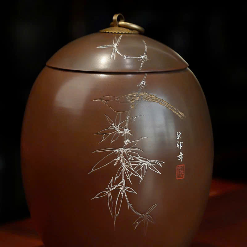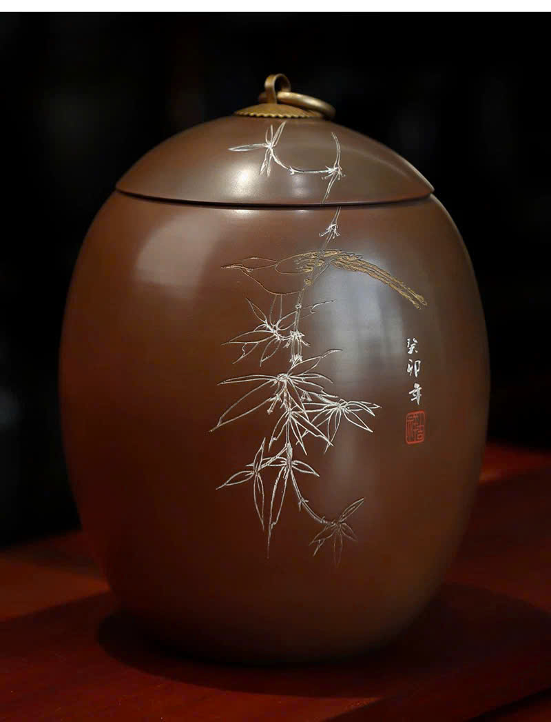 Đặt mua Hũ đựng trà tử sa nê hưng hỏa biến dáng trứng thủ công đẹp HT98