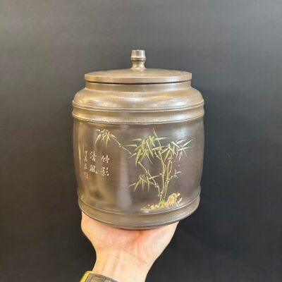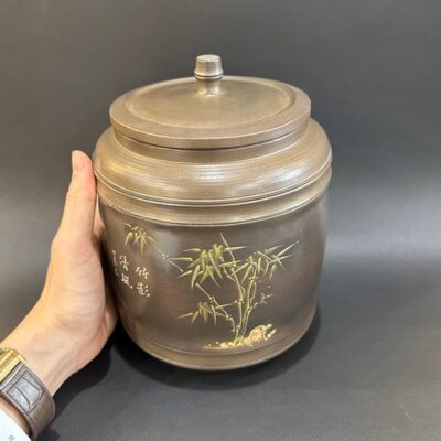 Hũ đựng trà tử sa nê hưng khắc trúc bảo quản trà lên men đẹp HT61