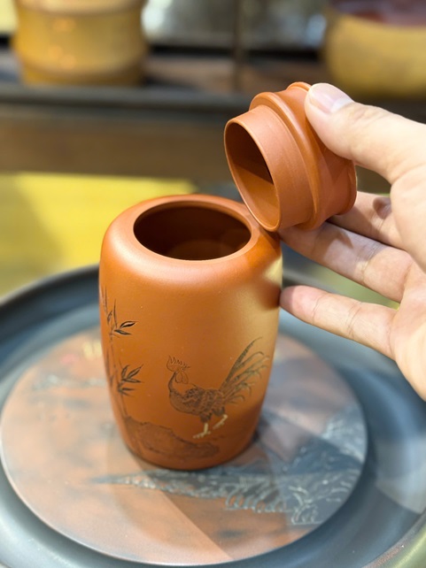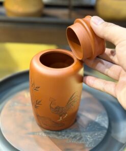 Hũ đựng trà tử sa nguyên khoáng chu nê khắc gà đẹp 5x8x13.5cm HT72
