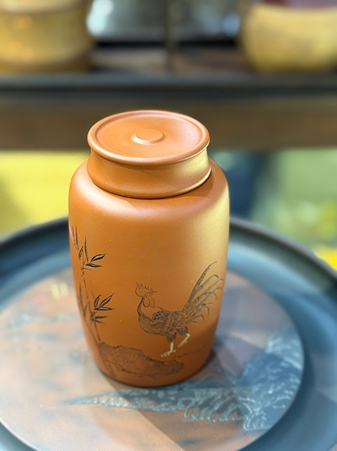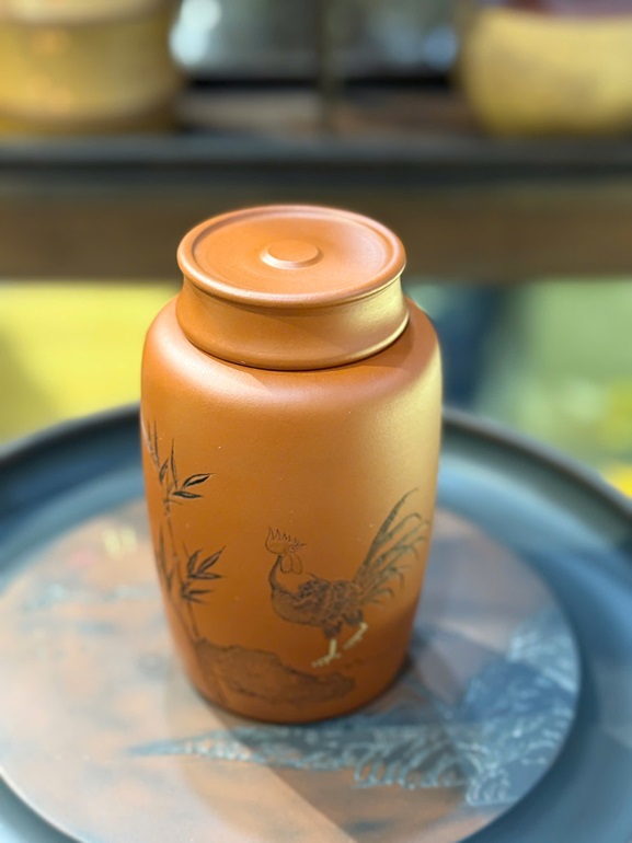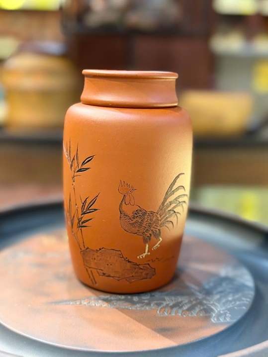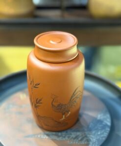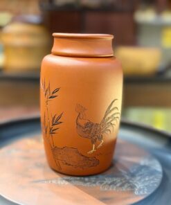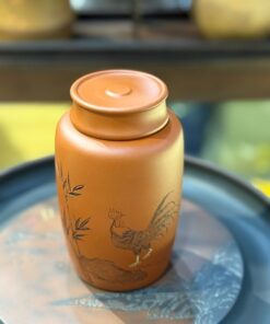 Đặt mua Hũ đựng trà tử sa nguyên khoáng chu nê khắc gà đẹp 5x8x13.5cm HT72