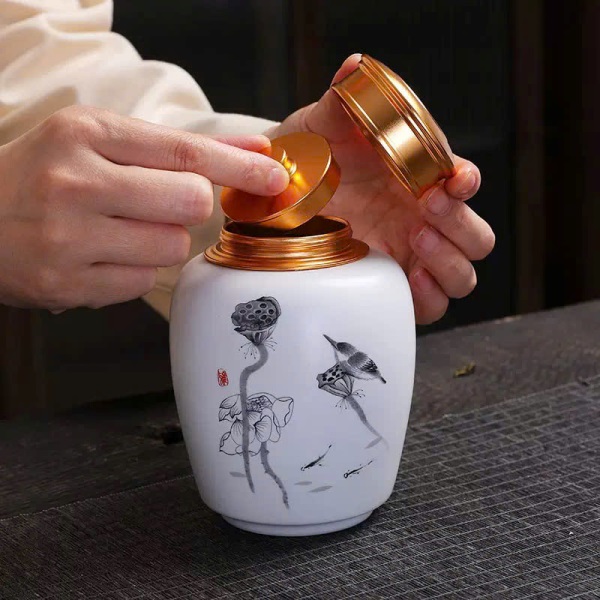 Đặt mua Hũ Trà Sứ Nắp Xoáy 2 Lớp Nhiều Họa Tiết 450ml HT88