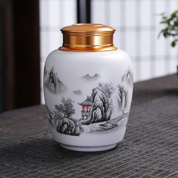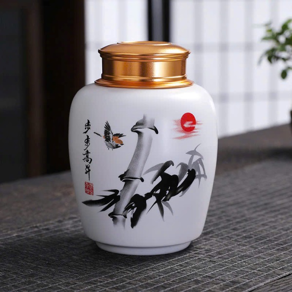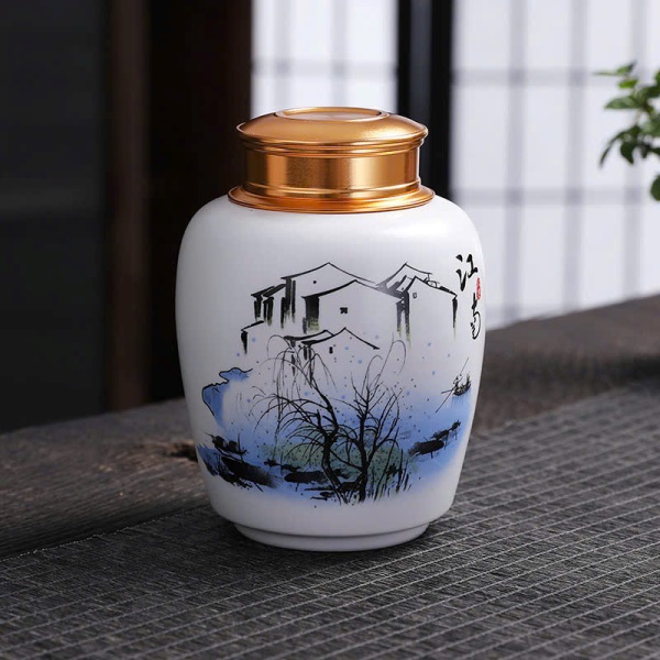 Hũ Trà Sứ Nắp Xoáy 2 Lớp Nhiều Họa Tiết 450ml HT88