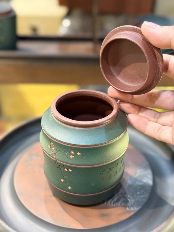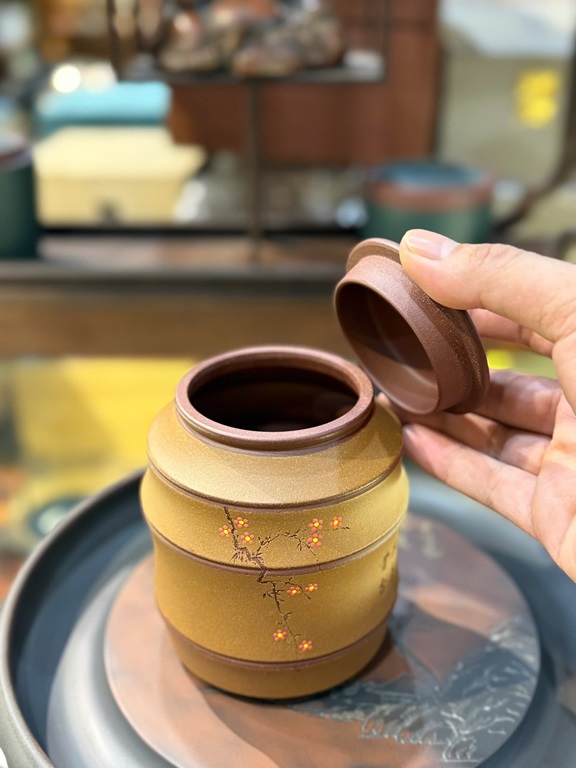 Đặt mua Hũ trà tử sa khác hoa mai HT82