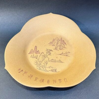 Kê ấm chén trà tử sa nguyên khoáng đất cũ khắc sơn thủy đẹp DC94