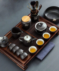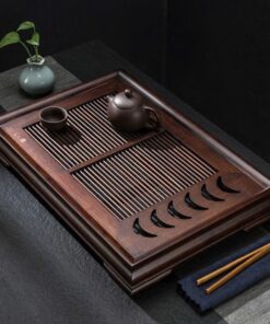 khay đựng ấm chén trà tre màu gỗ sang khe gác chén hình bán nguyệt bền đẹp 50x34cm.