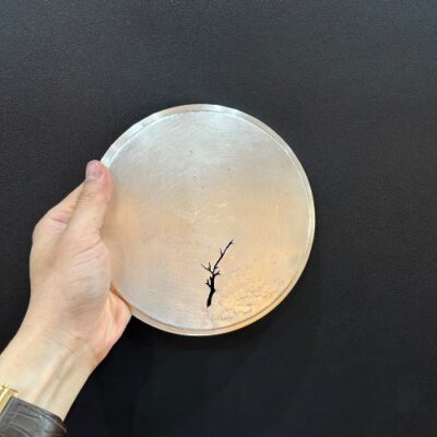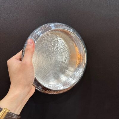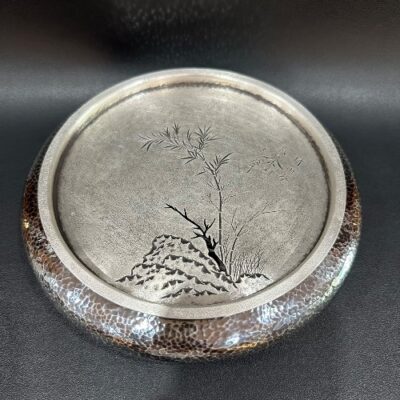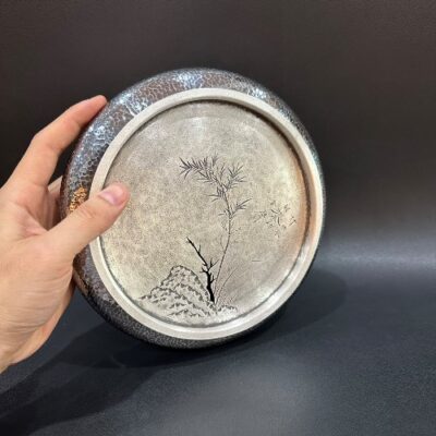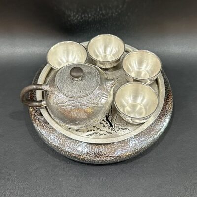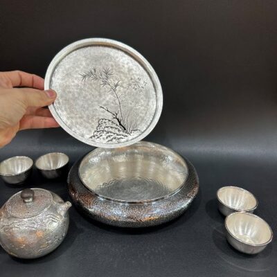 Khay trà bạc nguyên chất 999 bày ấm chén dáng tròn trúc đẹp KB01