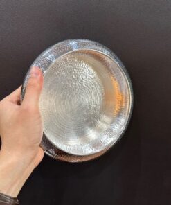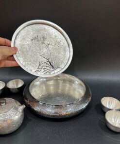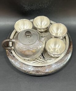 Khay trà bạc nguyên chất 999 để ấm chén dáng tròn trúc đẹp gò tay thủ công.