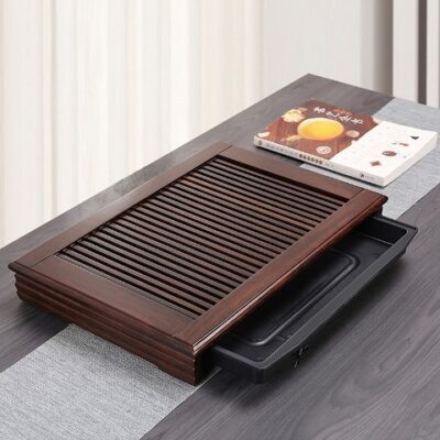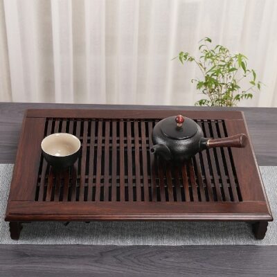 Đặt mua Khay trà bằng gỗ gụ đựng ấm chén pha trà bền đẹp 43x30cm KTG21