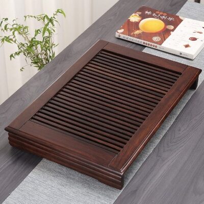 Khay trà bằng gỗ gụ đựng ấm chén pha trà bền đẹp 43x30cm KTG21