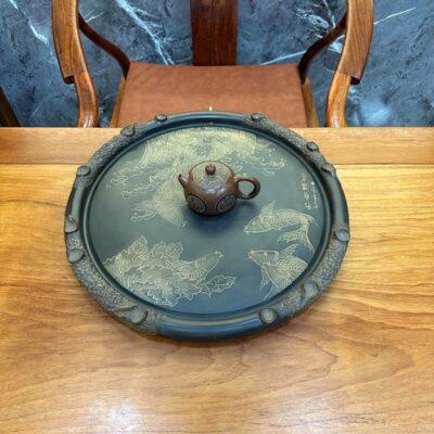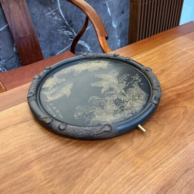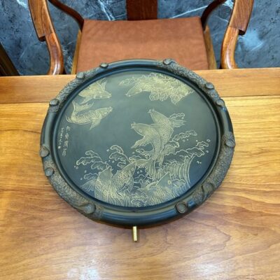 Đặt mua Khay trà cao cấp dáng tròn nê hưng hỏa biến cửu ngư đồ 43cm KNH20