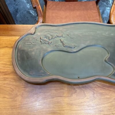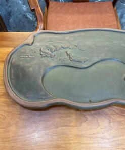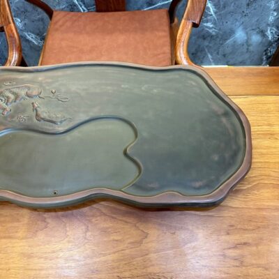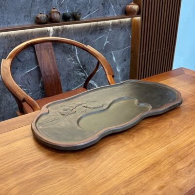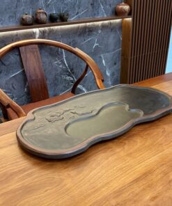 Khay trà đá tử sa nê hưng bày ấm chén đẹp hình trâu thủ công 76x39cm KNH11