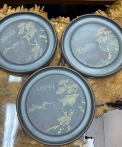 Đặt mua Khay trà đá tử sa nê hưng dáng tròn khắc sơn thủy để ấm chén 28cm KNH03