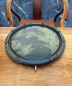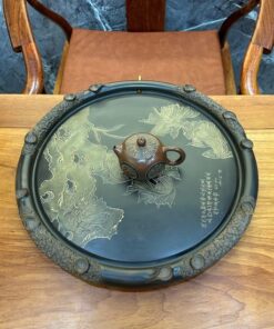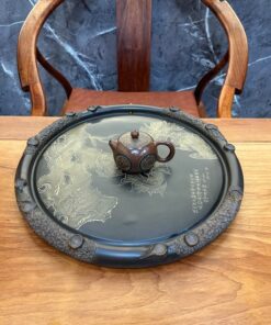 Khay trà để ấm chén dáng tròn gốm tử sa nê hưng hỏa biến ngũ ngư đồ 43cm KNH20