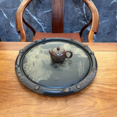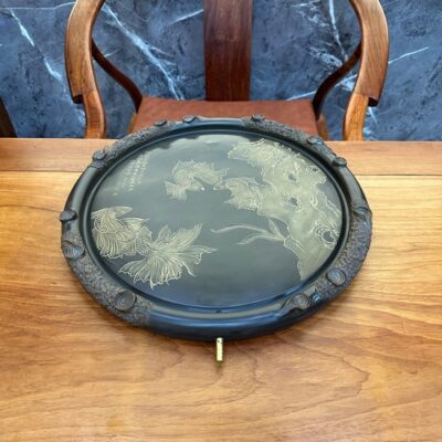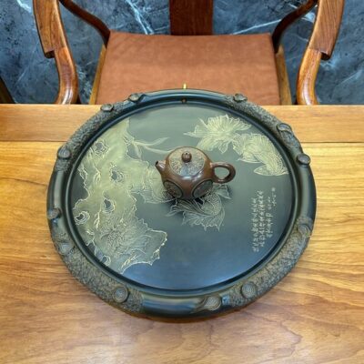 Khay trà để ấm chén dáng tròn gốm tử sa nê hưng hỏa biến ngũ ngư đồ 43cm KNH20