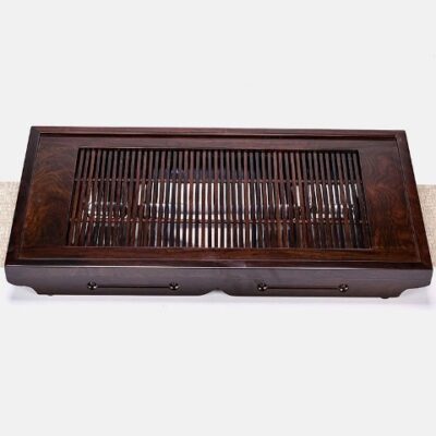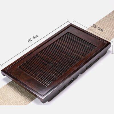 Khay trà gỗ gụ đựng ấm chén dáng dài có khay hứng inox 62x33cm KTG27