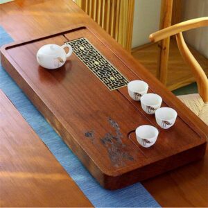 Hãy là người đầu tiên nhận xét “Khay trà gỗ nguyên khối bày ấm chén đẹp khắc cành tùng 70x35cm KTG35”