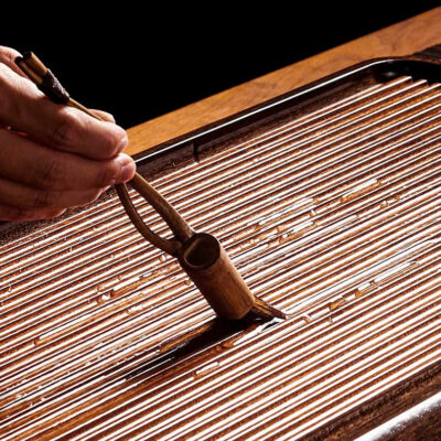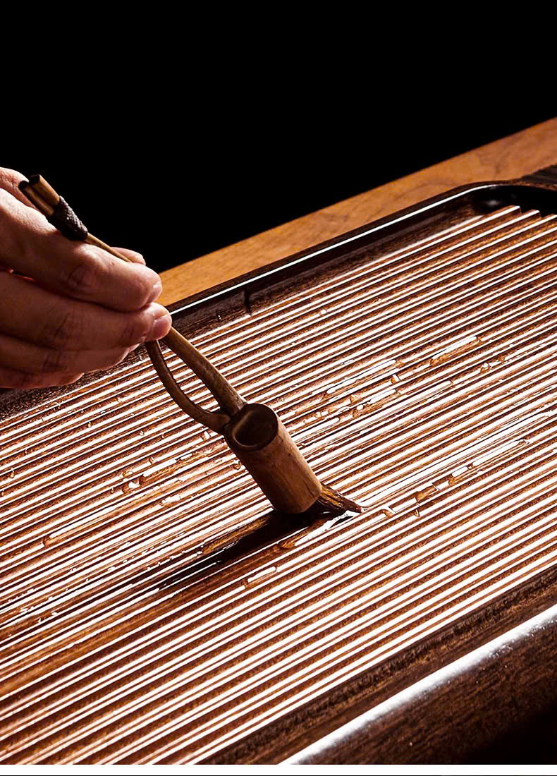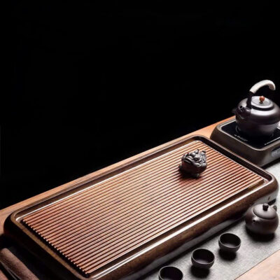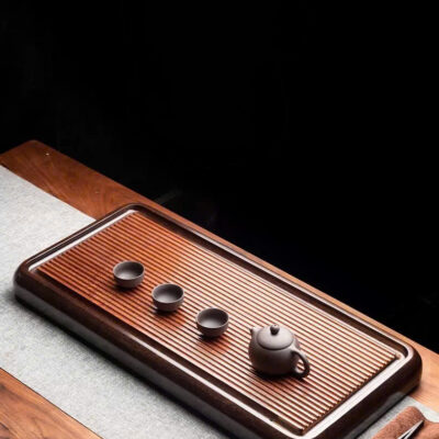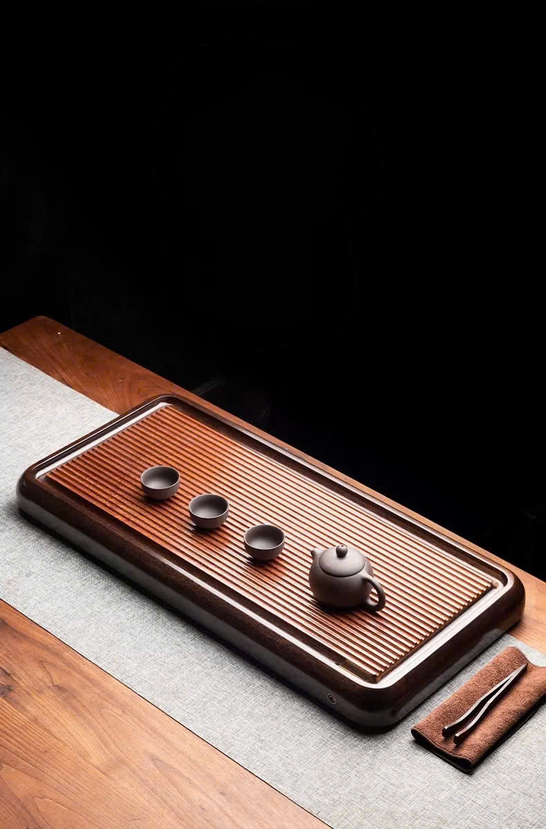Khay trà gỗ nguyên khối dạng bakelite để ấm chén cỡ lớn 90x44cm thoát nước tốt.