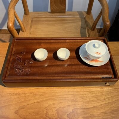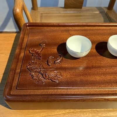 Đặt mua Khay trà gỗ nguyên khối để ấm chén sen cá đẹp 55x28cm KTG31