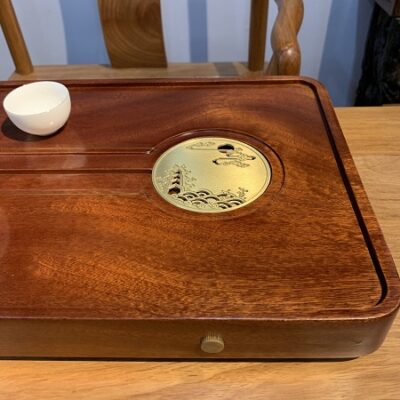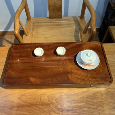 Đặt mua Khay trà gỗ nguyên khối đựng ấm chén đẹp 60x30cm KTG34