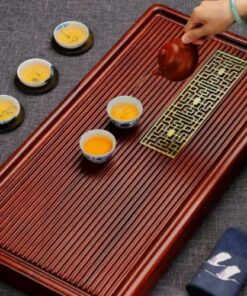 Khay trà gỗ nguyên khối gân nổi bày ấm chén trà đẹp 70x33cm KTG37