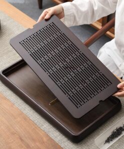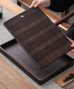 Đặt mua Khay trà tre đựng ấm chén dạng hộp màu gỗ 40x28cm đẹp KTT05