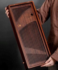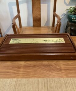 Khay trà tre đựng ấm chén dạng hộp màu gỗ 40x28cm đẹp KTT05