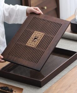 Đặt mua Khay trà tre để ấm chén màu gỗ bền đẹp dạng hộp 40x28cm KTT04