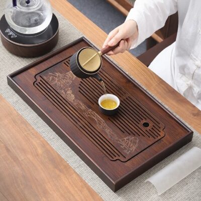 Đặt mua Khay trà tre đựng ấm chén dạng hộp đẹp 48x28cm họa tiết đẹp KTT06