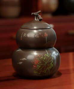 Đặt mua Lọ bảo quản trà lên men tử sa nê hưng hình hồ lô khắc sen đẹp HT94
