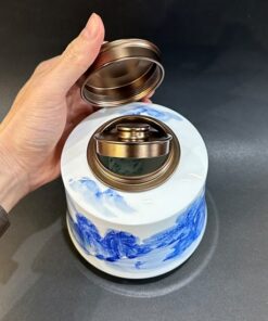 Đặt mua Lọ bảo quản trà nắp kín sứ cảnh đức vẽ tay sơn thủy đẹp 850ml HT84