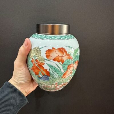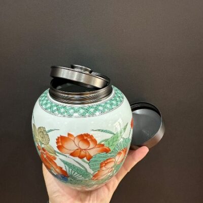 Đặt mua Lọ đựng trà bằng sứ cảnh đức vẽ tay hoa sen đẹp nắp 2 lớp khít 900ml HT45