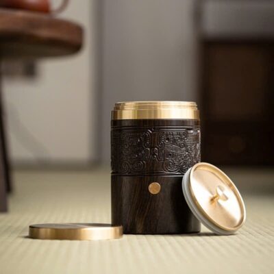 Lọ đựng trà gỗ lót titan cao cấp nắp 2 lớp xoáy kín bảo quản tốt 11x7cm HT19
