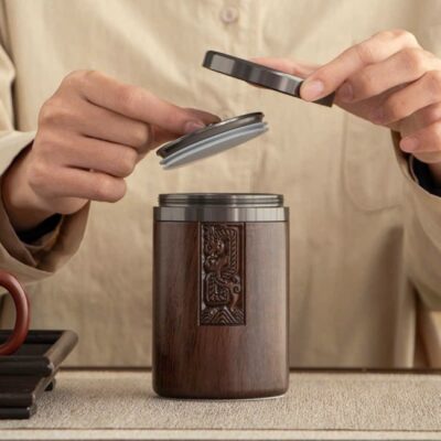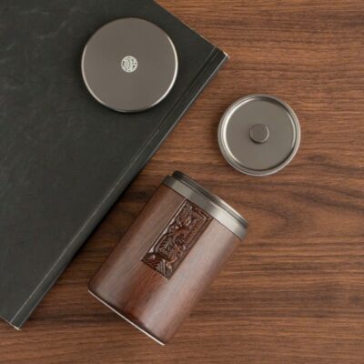Lọ đựng trà gỗ lót trong inox 304 nắp xoáy 2 lớp kín 11x7cm HT18