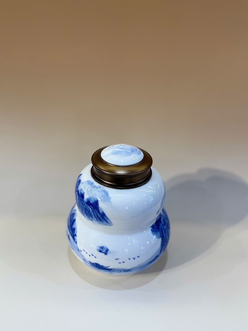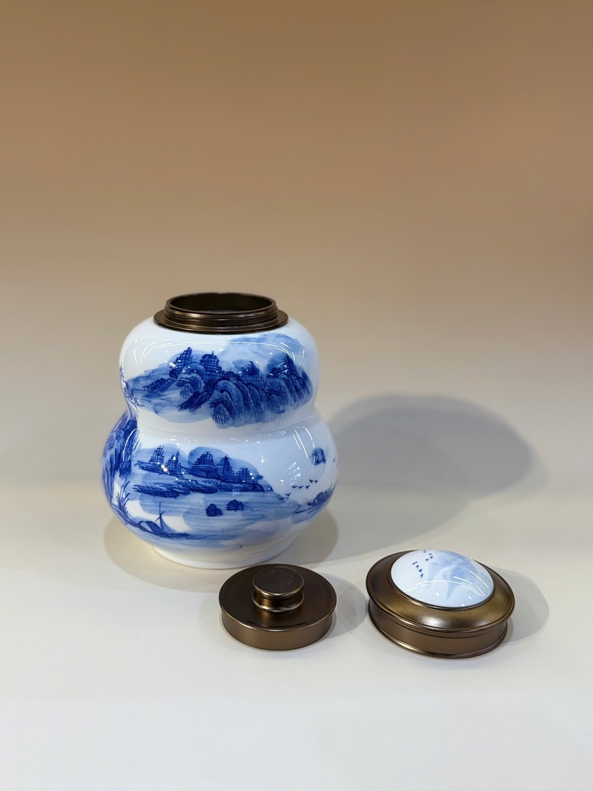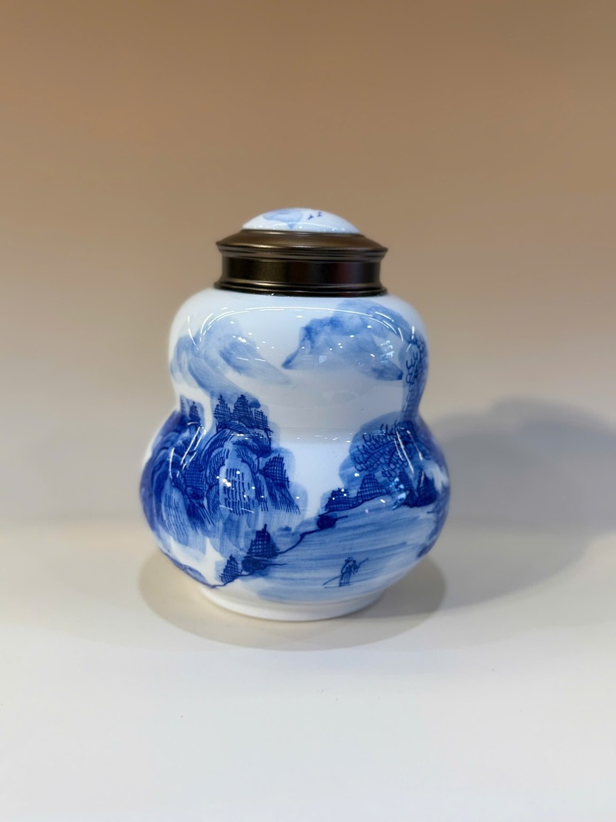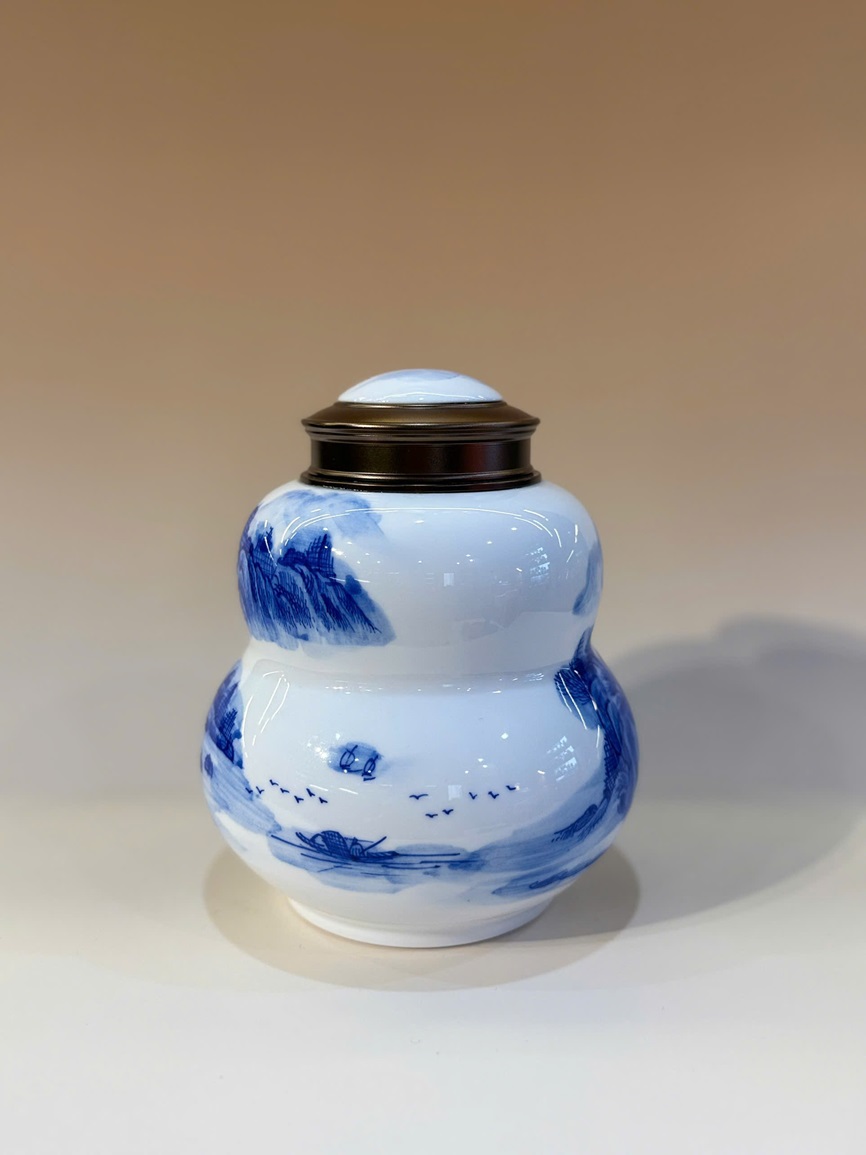 Lọ đựng trà sứ cảnh đức giang tây dáng hồ lô vẽ tay đẹp 800ml HT85 (Sao chép)