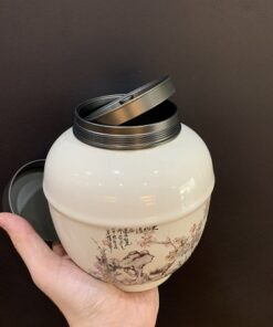 Đặt mua Lọ đựng trà sứ cao cấp nắp xoáy 2 lớp khít họa tiết sơn thủy 900ml HT09