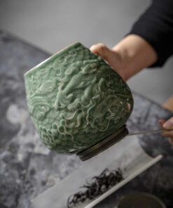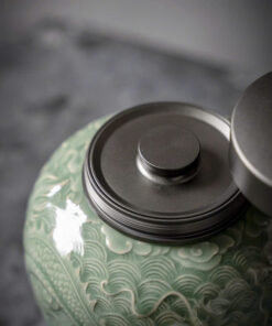 Đặt mua Lọ đựng trà sứ men ngọc cao cấp họa tiết rồng nắp xoáy 900ml HT05