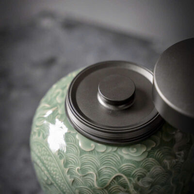 Đặt mua Lọ đựng trà sứ men ngọc cao cấp họa tiết rồng nắp xoáy 900ml HT05